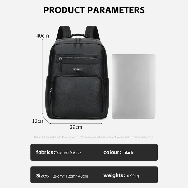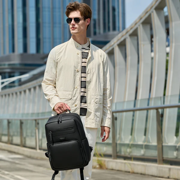 الحقيبة باسم Rahala RAL820، وهي حقيبة ظهر جلدية فاخرة مُصممة للأعمال والسفر، وتتميز بتصميم عصري وأنيق باللون الأسود .