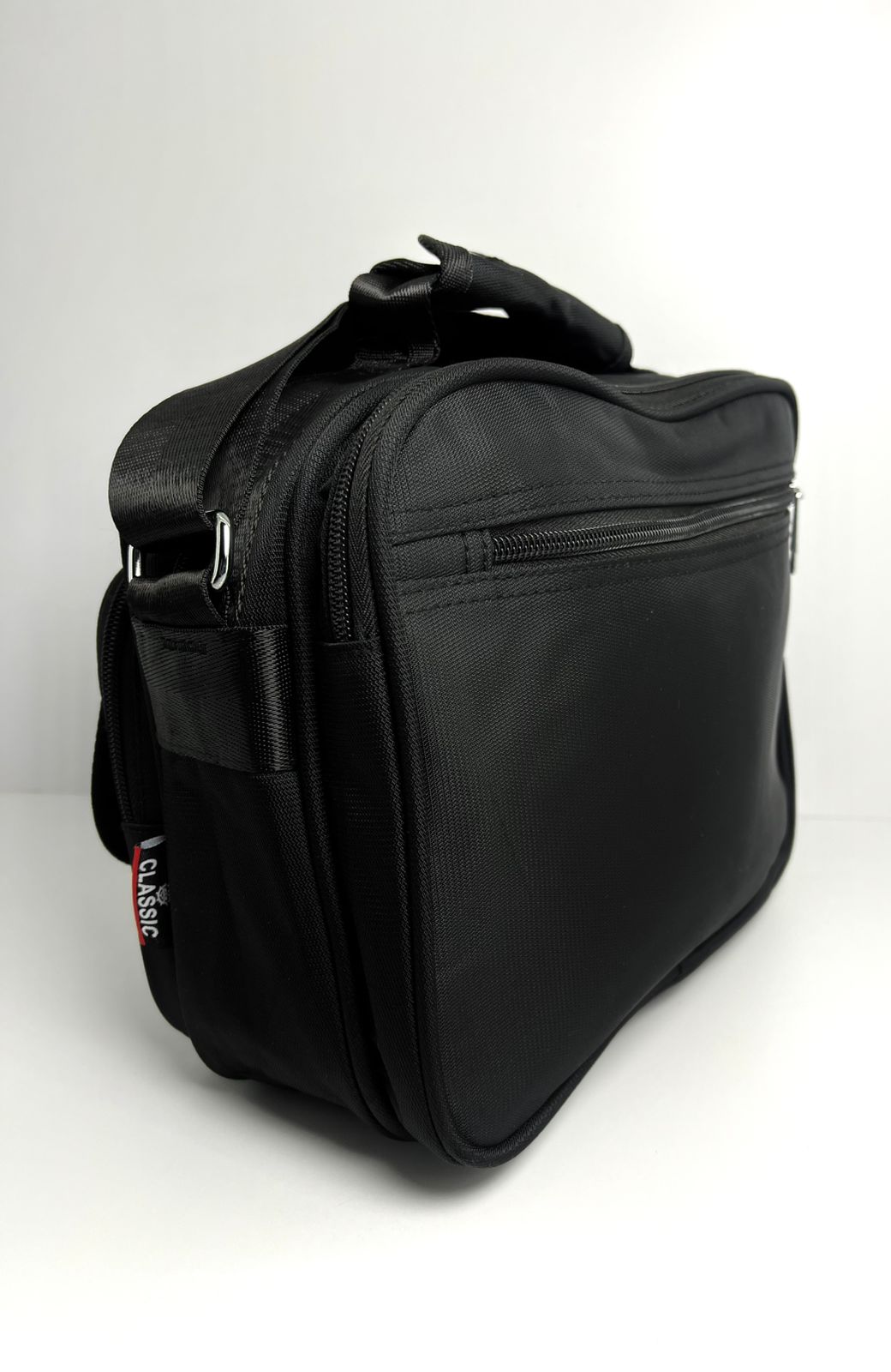 تُعرف هذه الحقيبة باسم حقيبة كتف ويد كلاسيك (Classic Shoulder Bag)، وهي من الحقائب الرجالية العملية والشائعة جداً في مصر بفضل متانتها وتعدد جيوبها