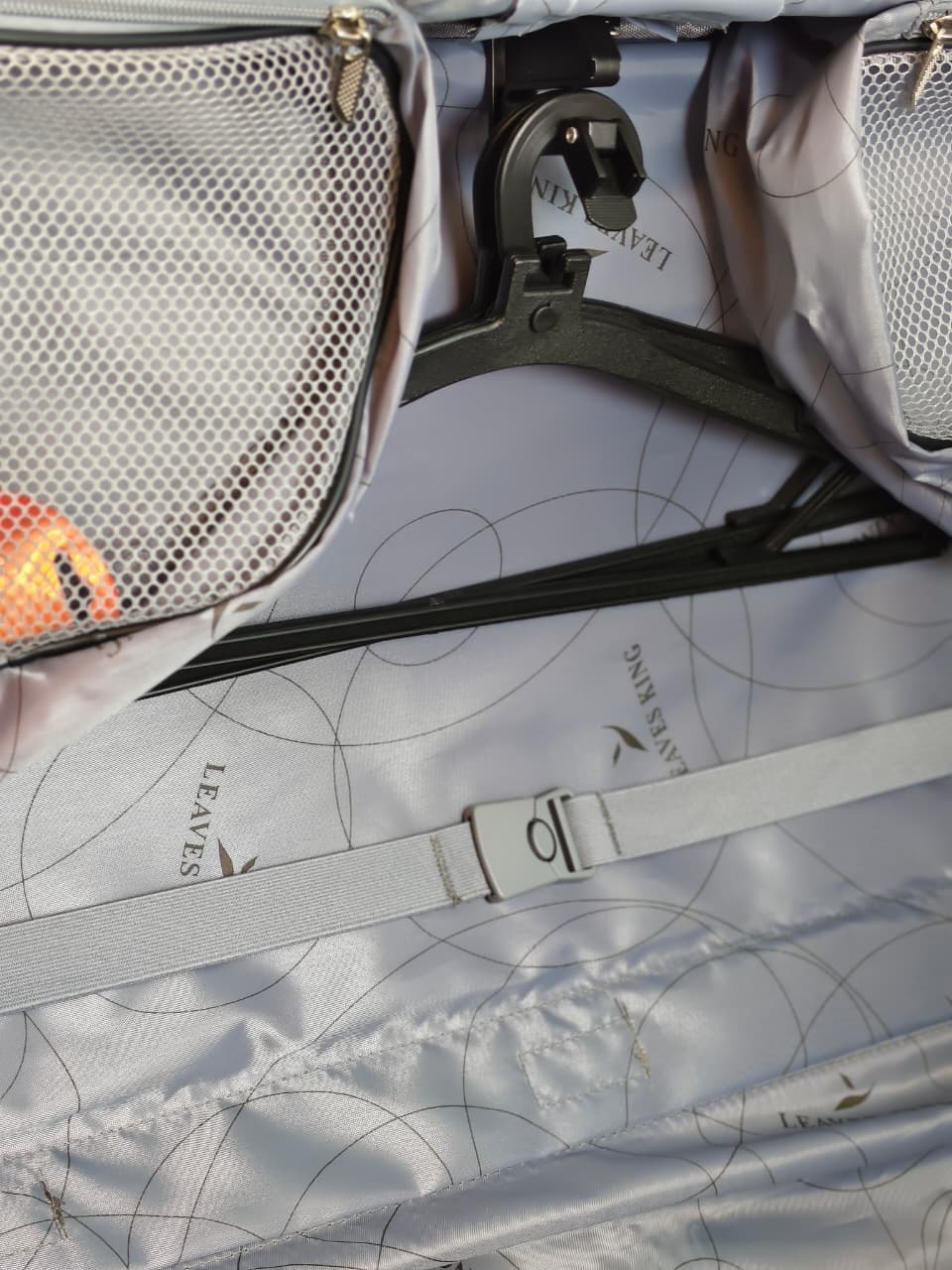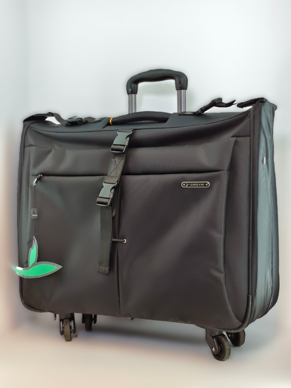 حقيبة حمل بدل بعجلات (Suit Carrier/Garment Bag) من العلامة التجارية Leaves King. تم تصميمها خصيصاً للمسافرين الذين يحتاجون للحفاظ على ملابسهم الرسمية مثل البدل والفساتين دون أن تتعرض للتجاعيد أثناء التنقل.