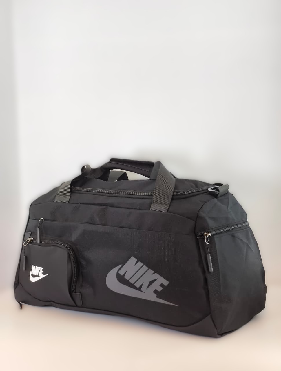 - الماركة: نايكي (Nike)، ويظهر شعار الماركة الشهير “Swoosh” بشكل بارز وكبير على جانب الحقيبة