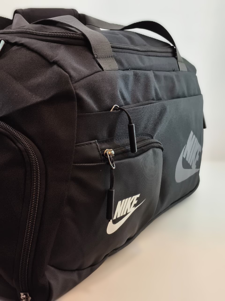 تُعد هذه الحقيبة حقيبة “دفل” (Duffel Bag) رياضية من نايكي (Nike) باللون الأسود، وهي مصممة لتكون عملية جداً لاستخدامات الجيم، السفر السريع، أو كحقيبة “كابينة” للطائرة