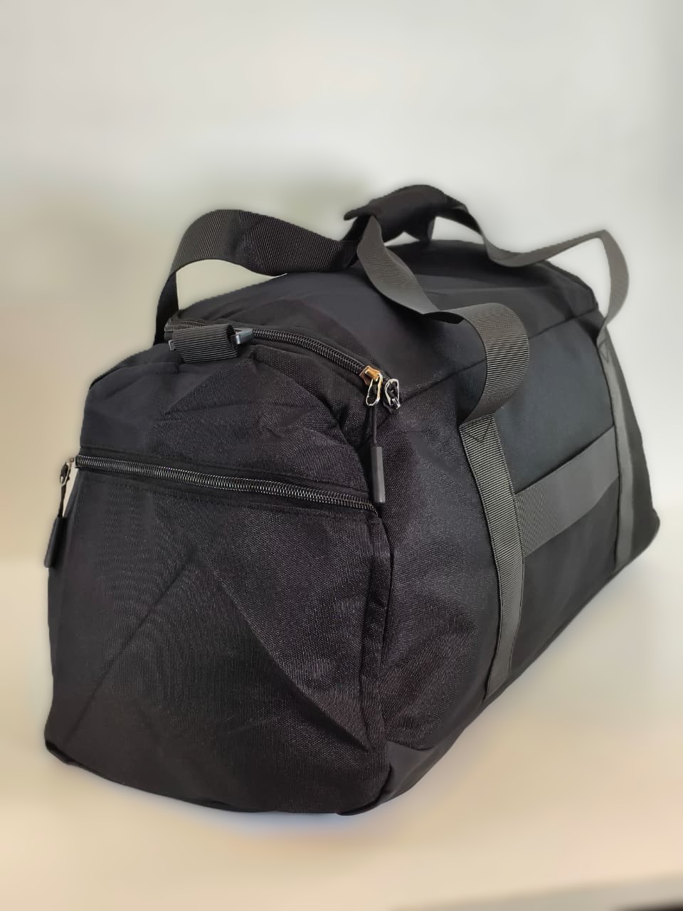 - الخامة: مصنوعة من قماش البوليستر المتين والمقاوم للماء والرطوبة، مما يضمن حماية ملابسك وأدواتك الرياضية
