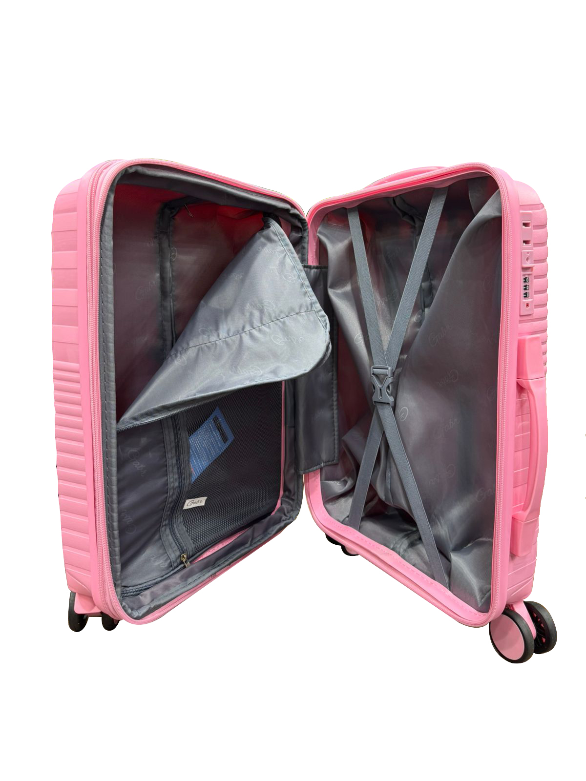 حقيبة سفر سيليكون ماركة Gabr مقاس 20 اللون بينك مع سوسته توسيع ٥ سم بالإضافة لقفل باسوورد بتشيل وزن من ٧ك لحد 10 ك