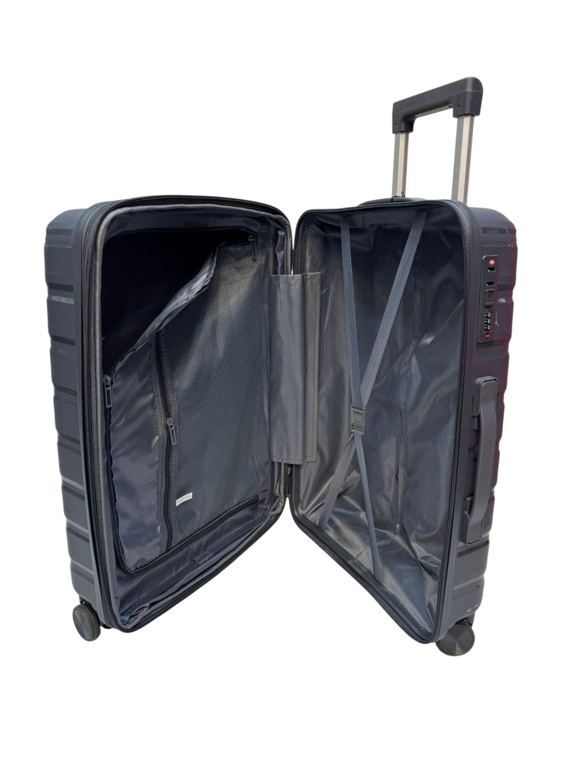 حقيبة سفر سيليكون ماركة latena الابعاد طول٦٣ سم* عرض ٣٩ سم * عمق ٢٥ سم مع سوستة توسيع ٥ سم وقفل حمايه باسوورد اللون رصاصي