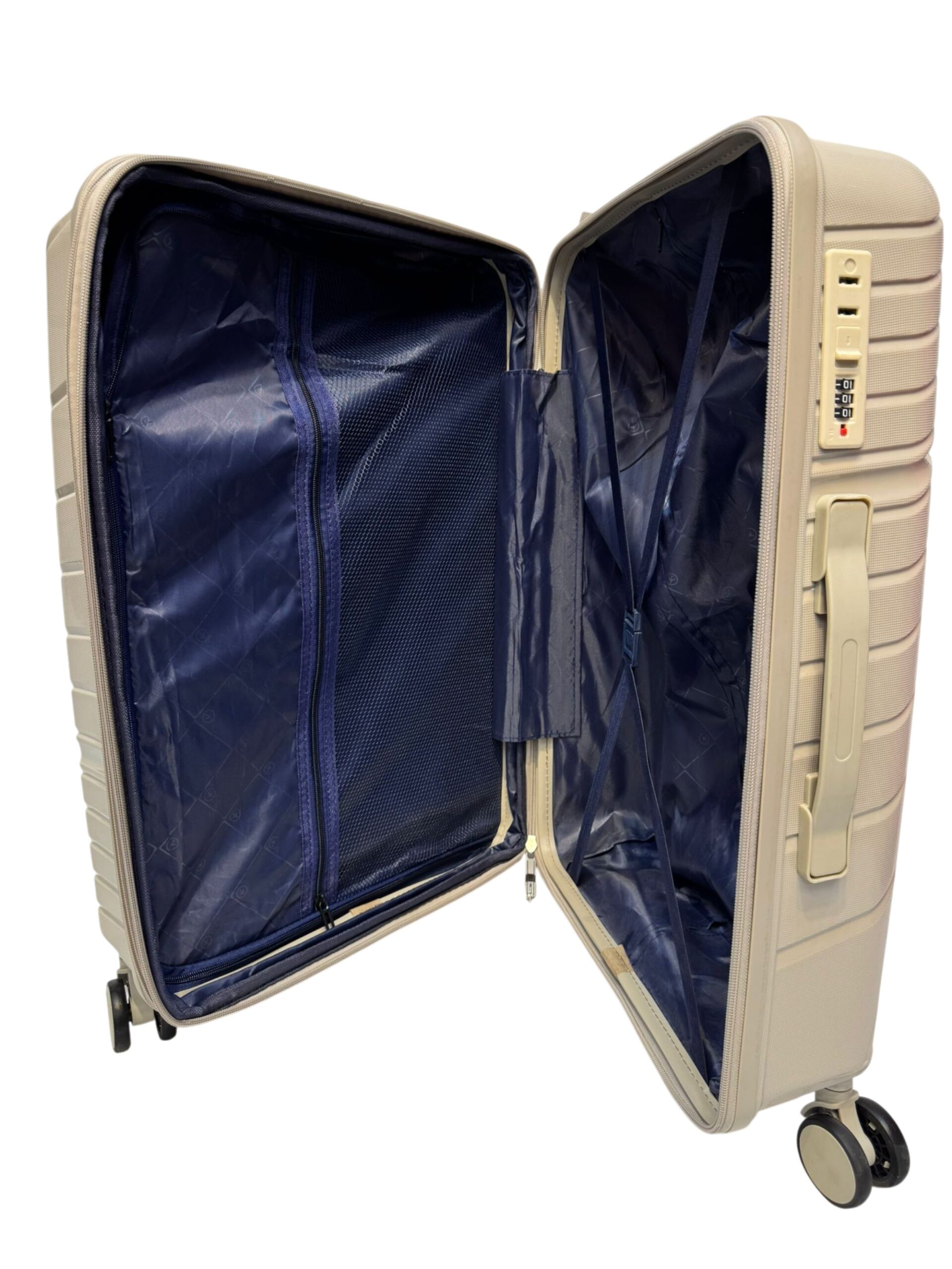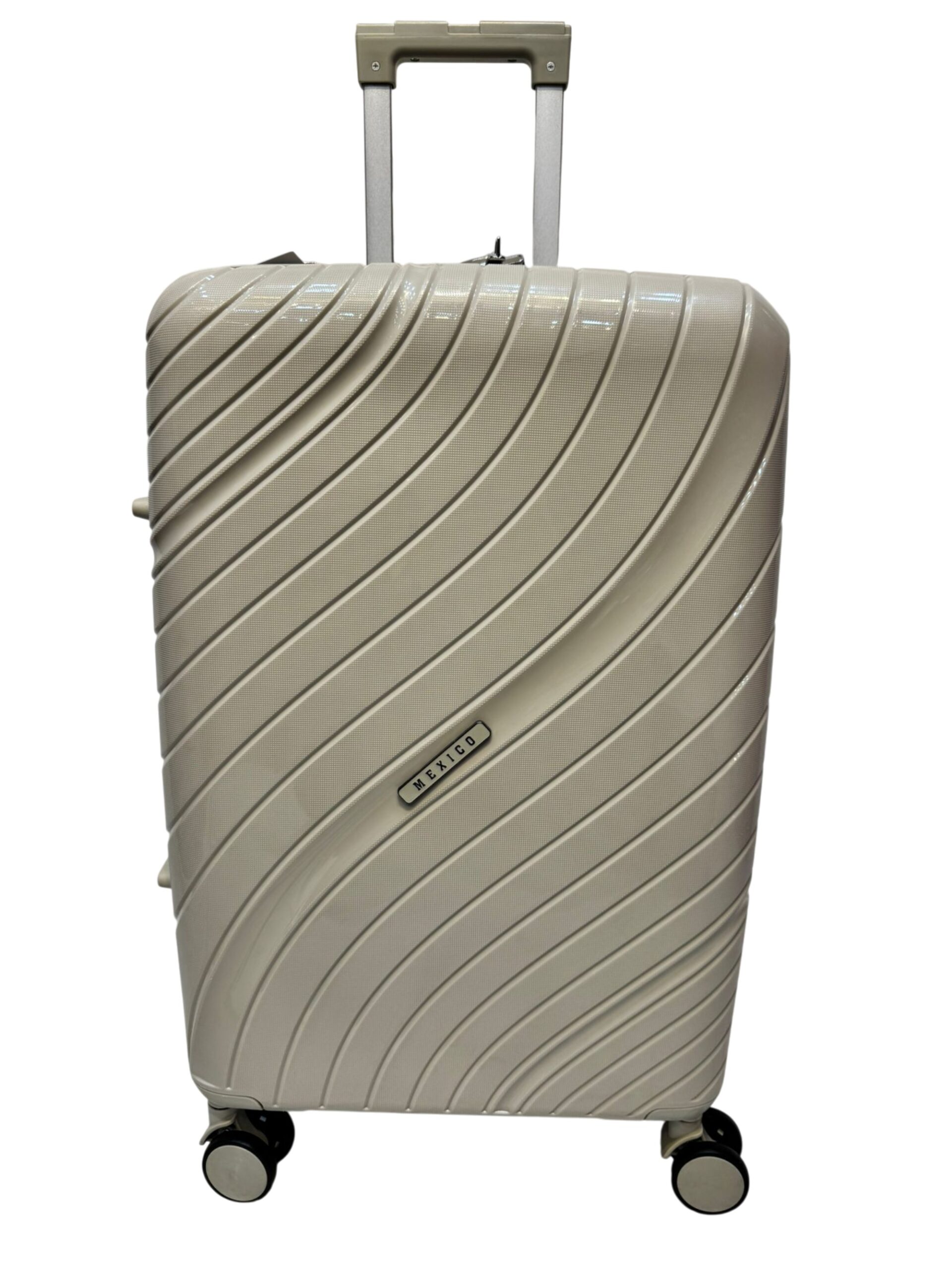 حقيبة سفر سيليكون ماركة MEXICO مقاس ميديام مقاس ٢٤ و الابعاد الطول ٦٦ سم و العرض ٤٣ سم و العمق ٣٠ سم بتشيل لحد وزن ١٧ ك مع قفل حمايه باسوورد و سوسته توسيع ٥ سم اللون بيج
