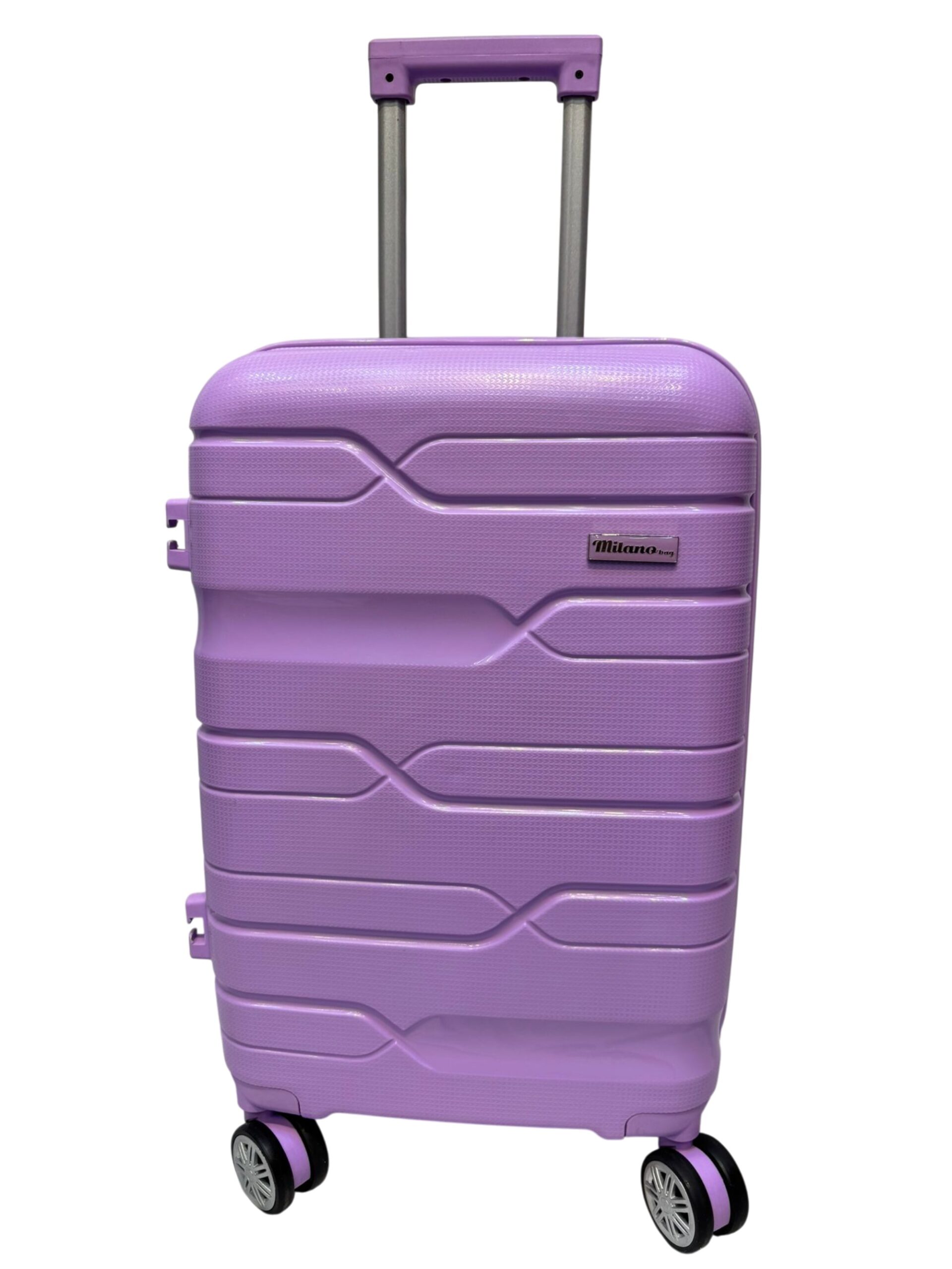 حقيبة سفر سيليكون ماركة Milano الابعاد طول٥٥ سم* عرض ٣٥ سم * عمق ٢٢ سم مع سوستة توسيع ٥ سم وقفل حمايه باسوورد اللون موف