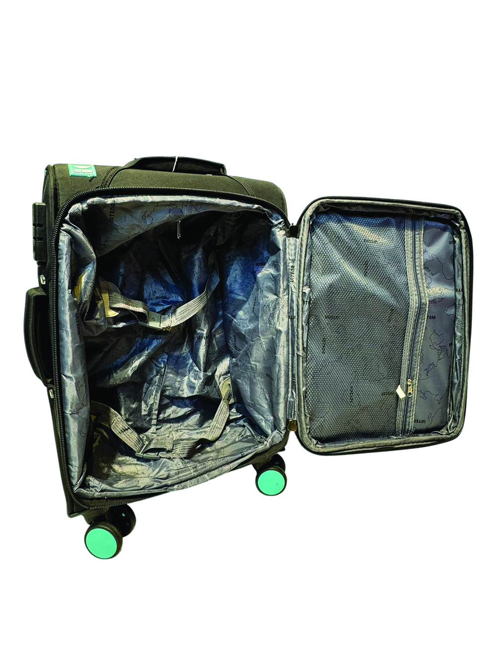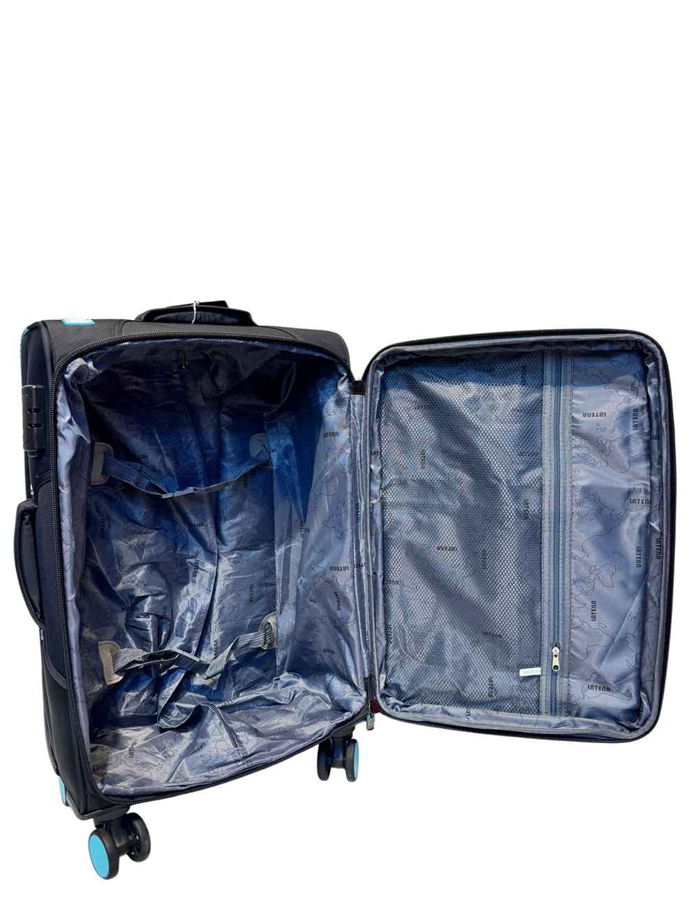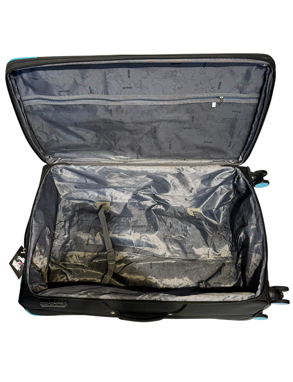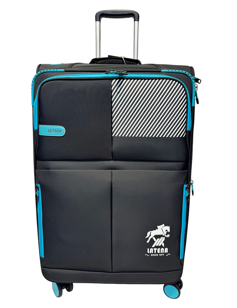 حقيبة سفر قماش وتربروف ماركةLATENA التفاصيل عجلات 360ْ مزودة بسوستة توسيع 5cm قفل حماية باسورد اللون اسود في تركواز