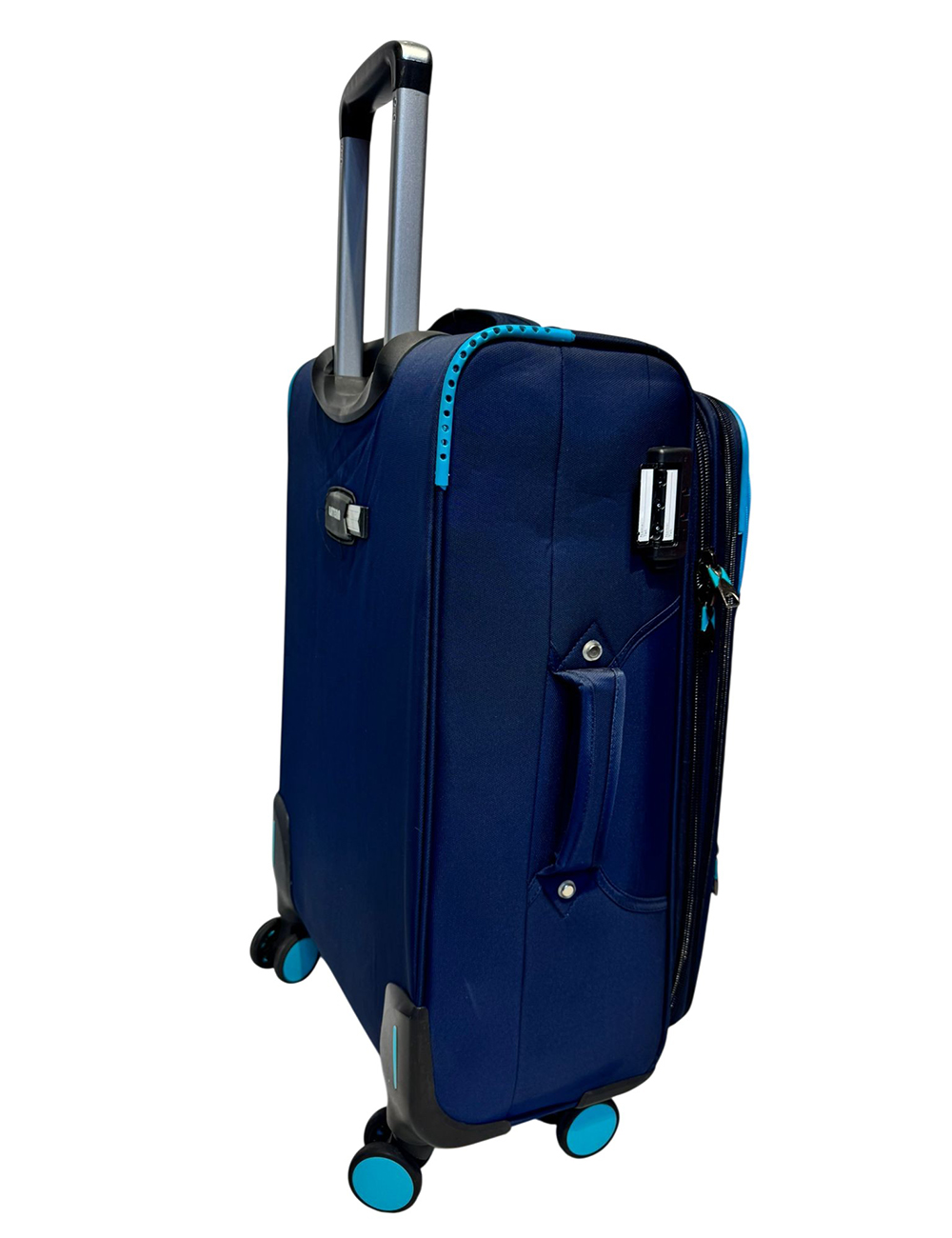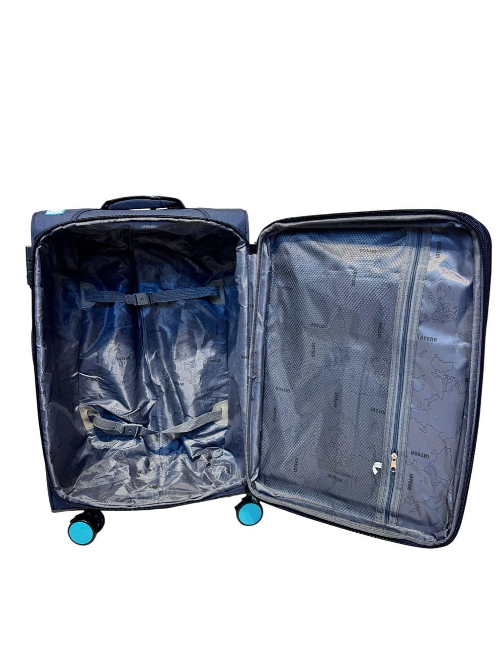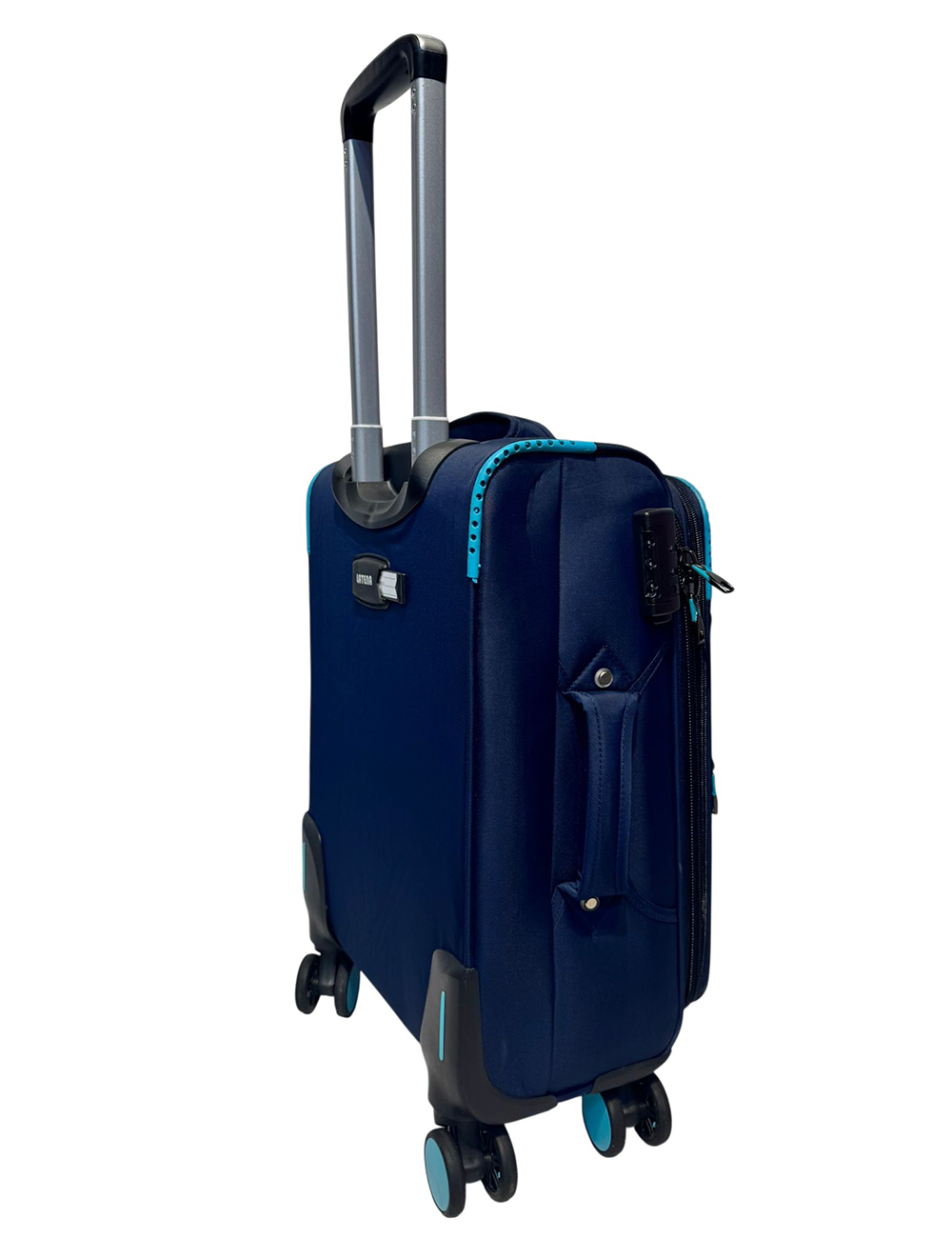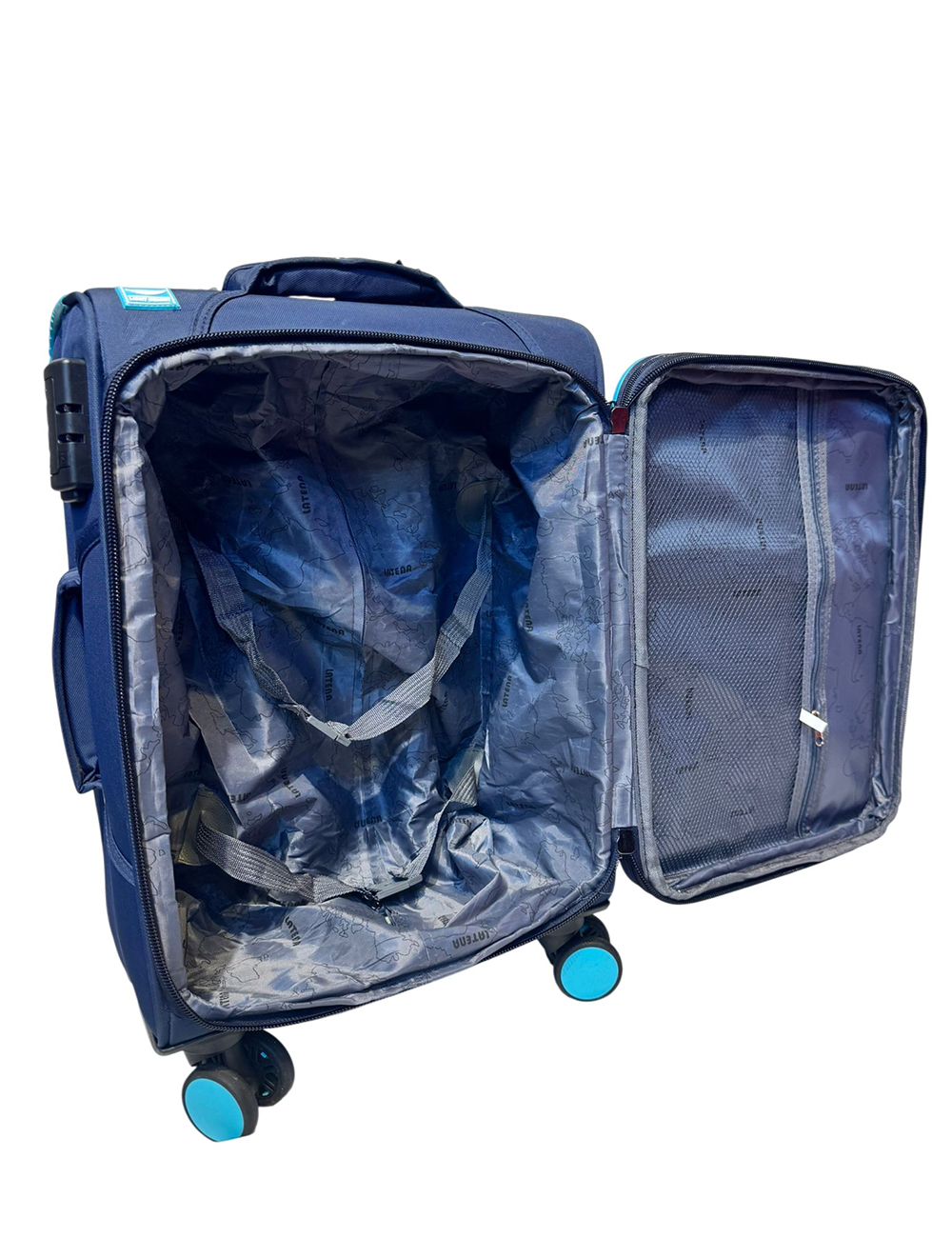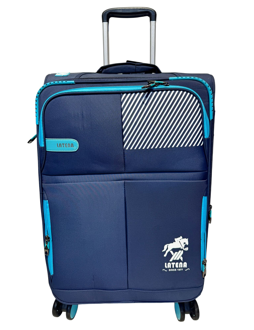 حقيبة سفر قماش وتربروف ماركةLATENA التفاصيل عجلات 360ْ مزودة بسوستة توسيع 5cm قفل حماية باسورد اللون كحلي في تركواز