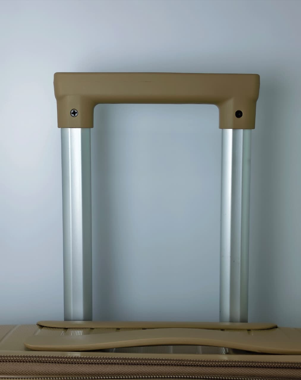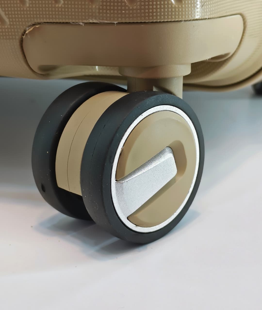 • نظام الحركة: مزودة بـ 4 عجلات مزدوجة (Double Wheels) تدور بزاوية 360 درجة، مما يضمن حركة ناعمة وسهولة في السحب حتى لو كانت الحقيبة ثقيلة.