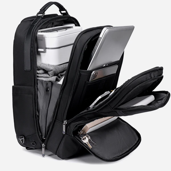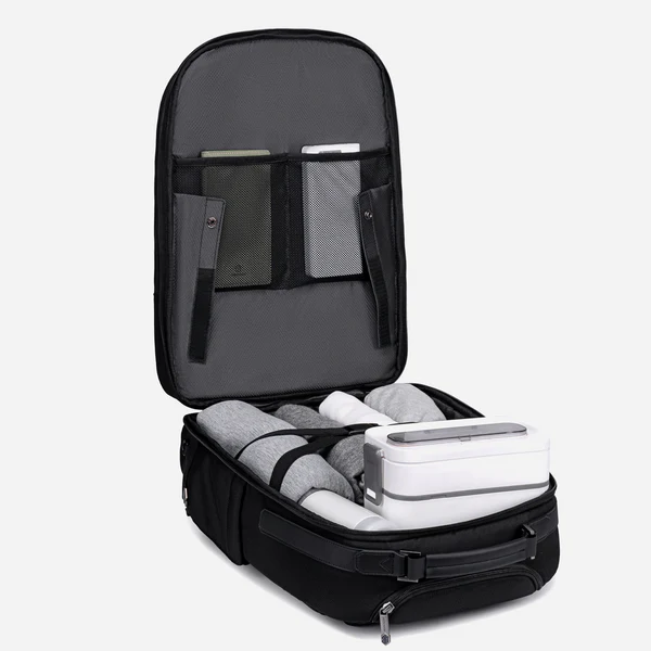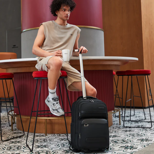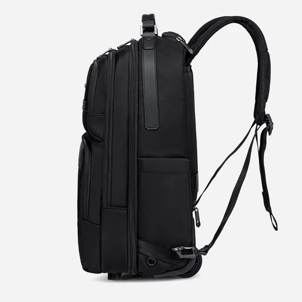- تصميم 2 في 1: حقيبة متعددة الاستخدامات يمكن حملها كحقيبة ظهر عادية أو سحبها كحقيبة بعجلات، مع إمكانية إخفاء مقبض العربة وأحزمة الكتف عند عدم الاستخدام.
