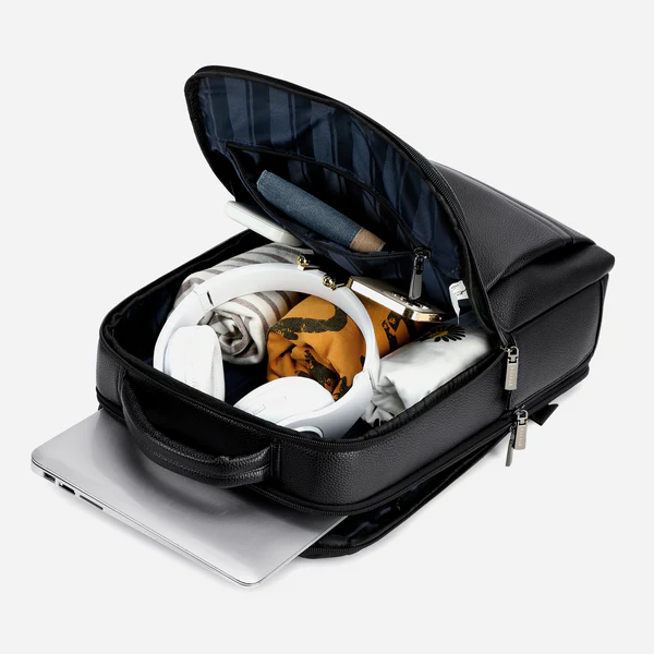 الحقيبة باسم RAL5604-1، وهي حقيبة ظهر جلدية فاخرة مُصممة للأعمال والسفر، وتتميز بتصميم عصري وأنيق باللون الأسود