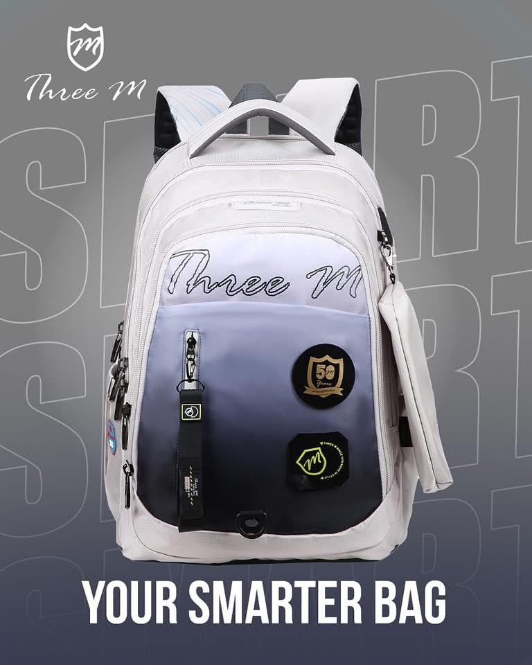 حقيبة ظهر three m مقاس 20  ابيض * رمادي