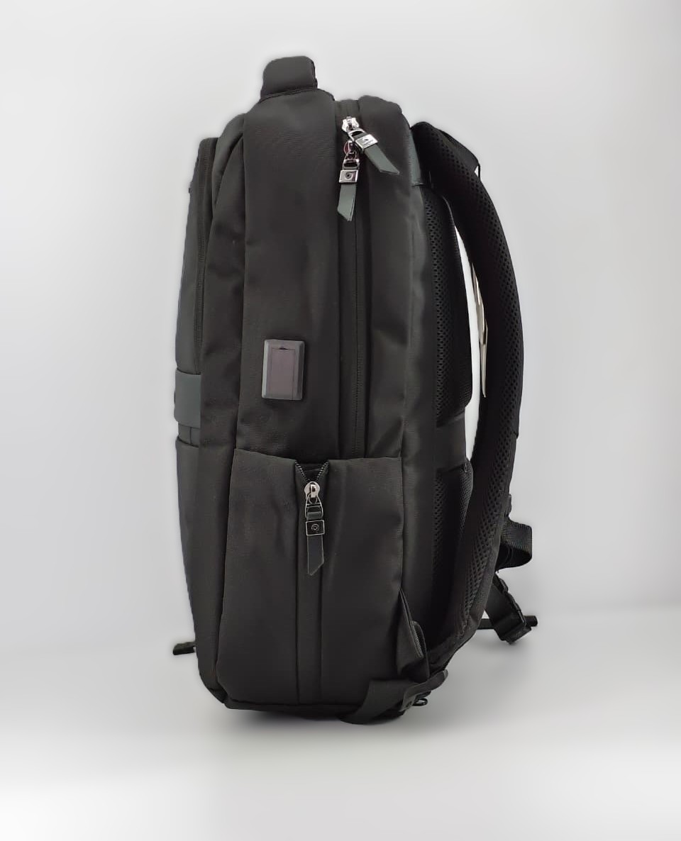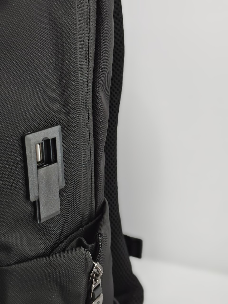 - الميزات التقنية: مزودة بمنفذ شحن USB خارجي (يظهر في جانب الحقيبة) يسهل عملية شحن الهاتف أثناء التنقل عبر توصيله بباور بانك داخلي.