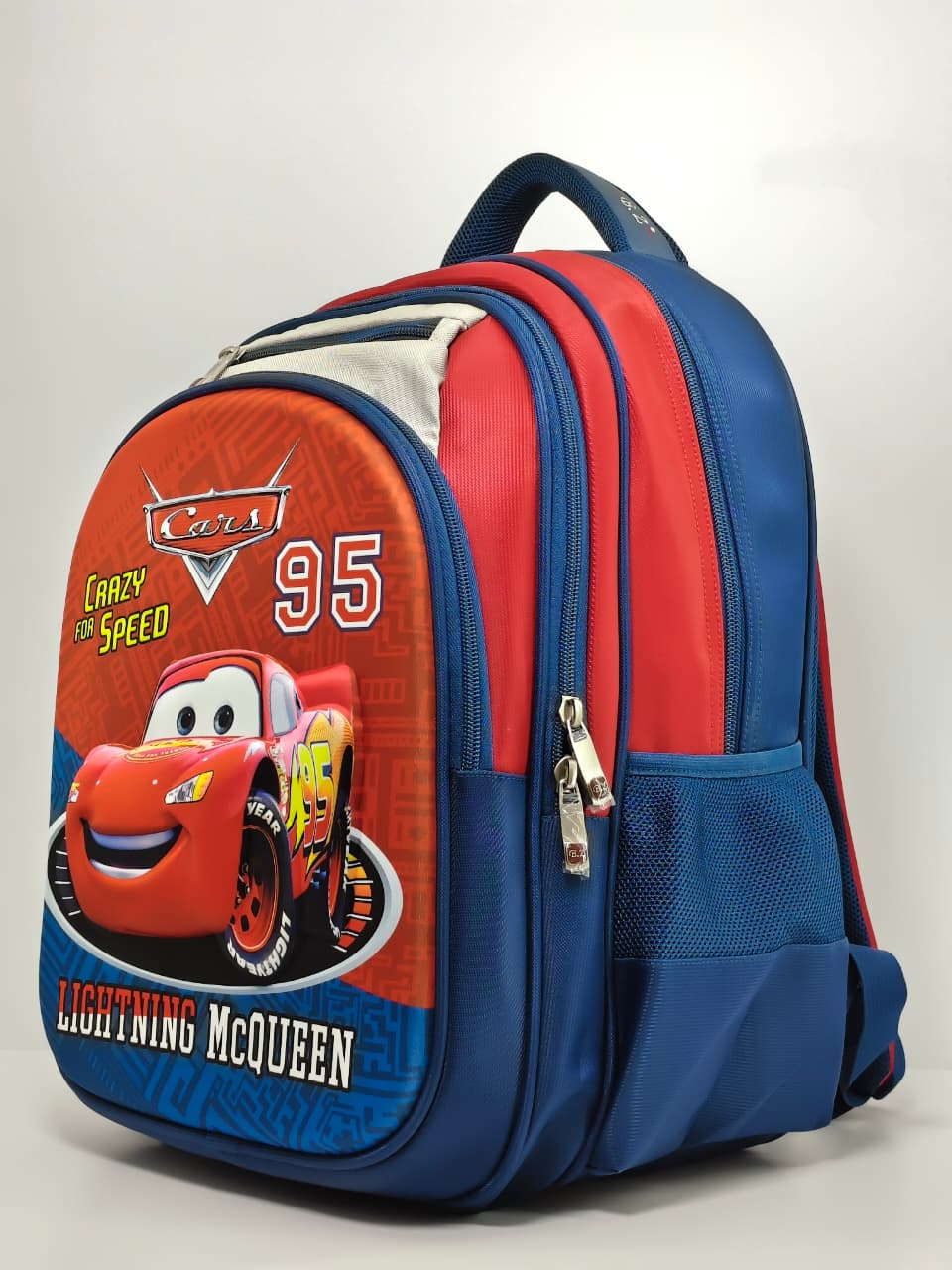 - التصميم: تأتي بتصميم ثلاثي الأبعاد (3D) يبرز الشخصية الكرتونية بشكل جذاب، مع شعار “CRAZY FOR SPEED” والرقم الشهير “95”.