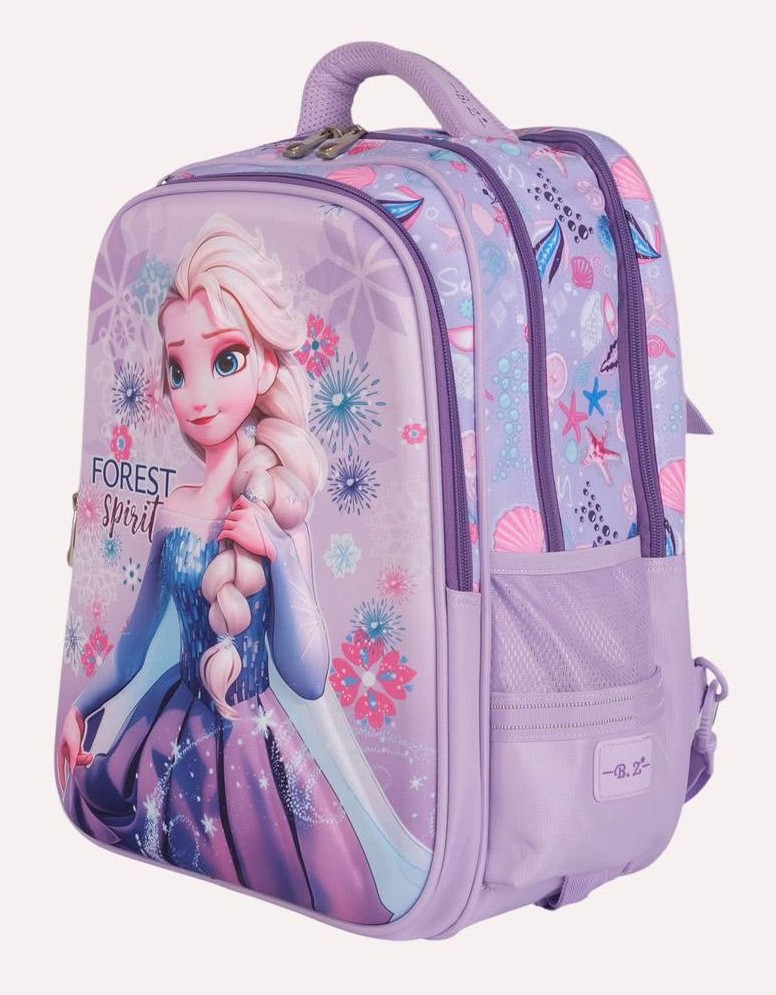 تُعد هذه الحقيبة المدرسية من إنتاج العلامة التجارية B.Z. (موديل Forest Spirit)، وتتميز بتصميم ثلاثي الأبعاد (3D) لشخصية “إلسا” من فيلم ديزني الشهير Frozen.