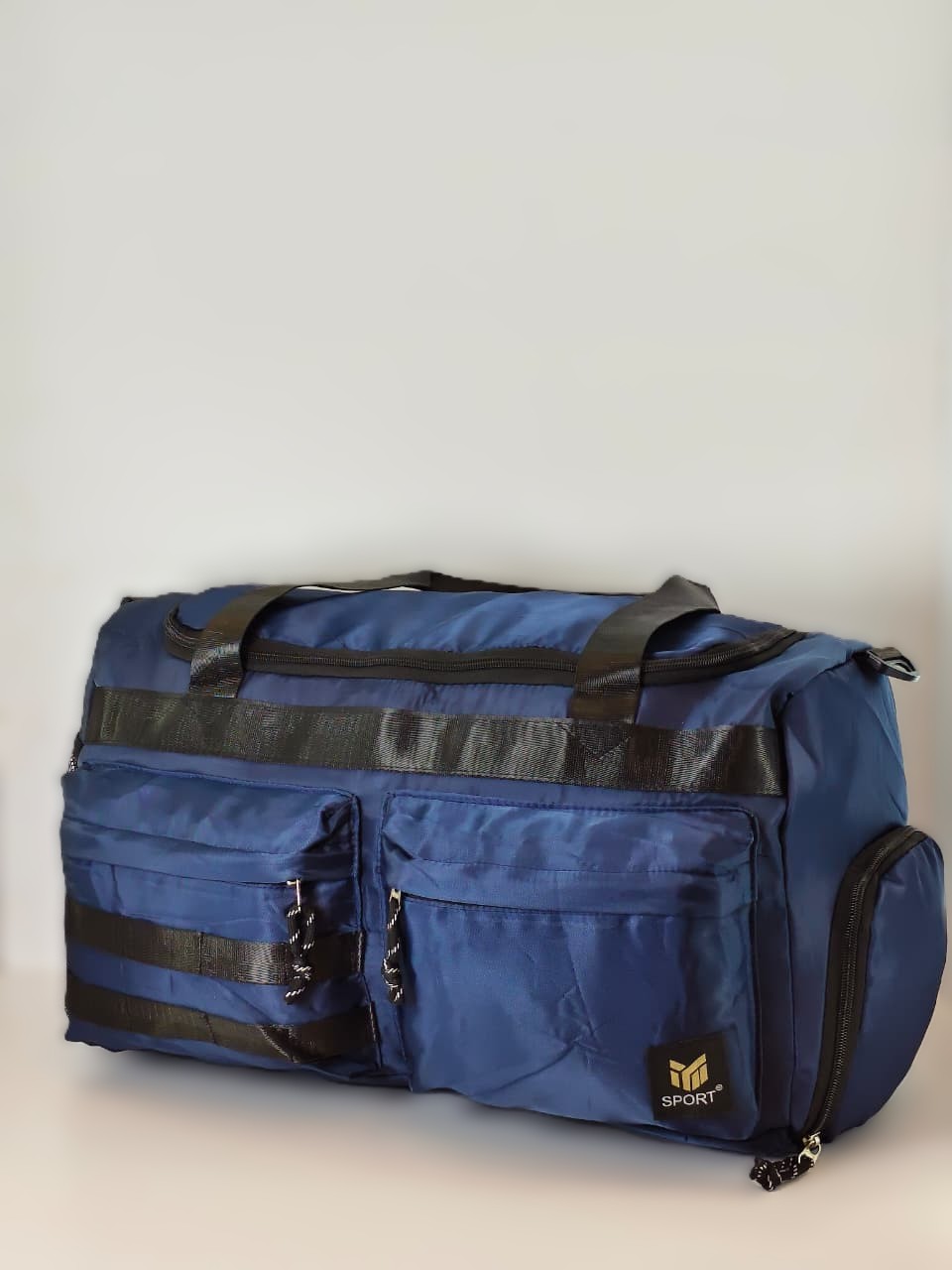 تُعرف هذه الحقيبة باسم شنطة دافل (Duffel Bag) المخصصة للجيم والسفر، وهي من تصميم ماركة SPORT. تتميز الحقيبة بتصميمها المتين وسعتها الكبيرة مما يجعلها مثالية للرحلات الطويلة أو حمل المعدات الرياضية الثقيلة.
