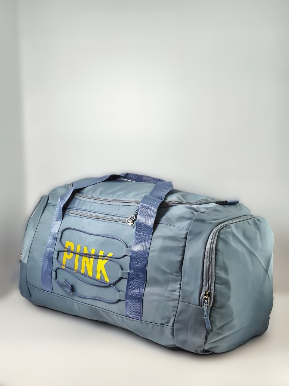 حقيبة رياضية (Duffel Bag) من ماركة بينك (PINK)، وتُستخدم عادةً للجيم أو السفر القصير، وتتميز بتصميم عملي يتضمن عدة جيوب ومساحات تخزين