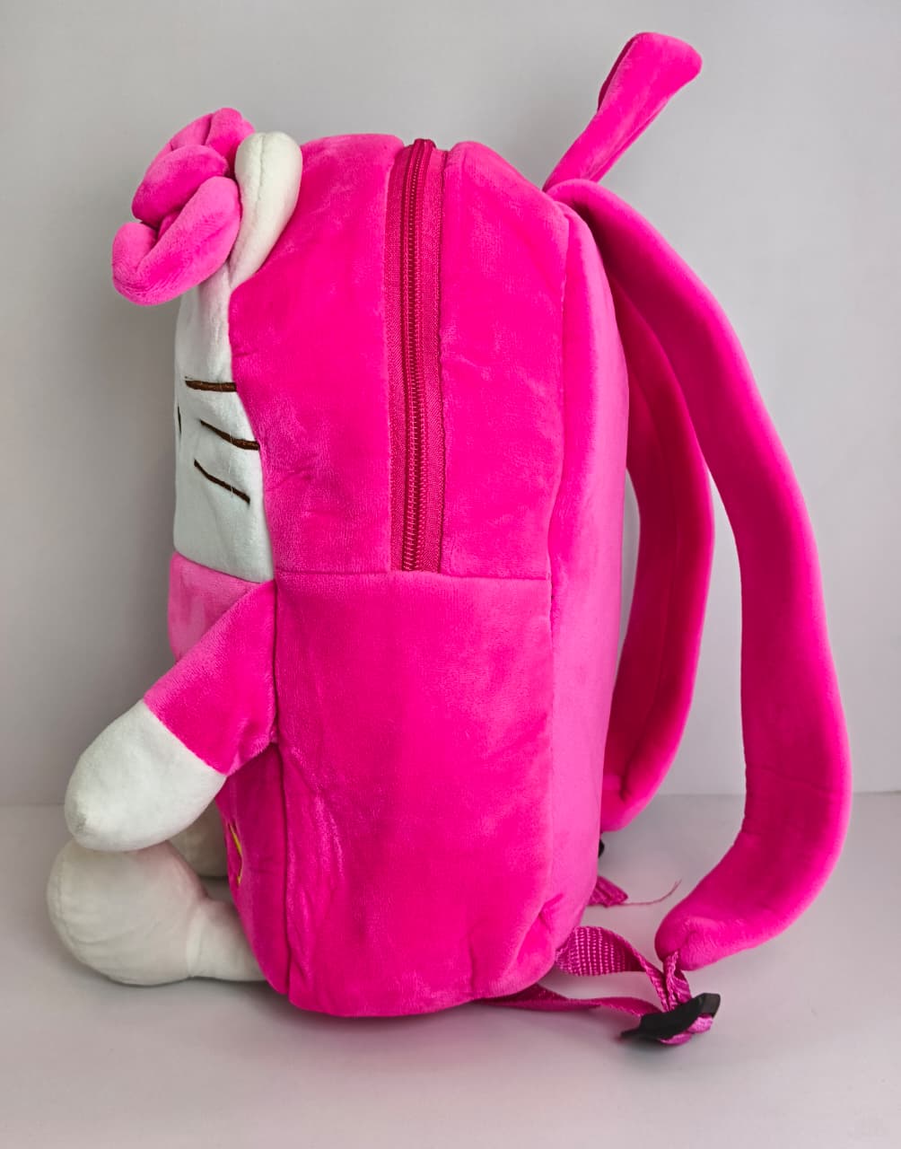 تُعد هذه الحقيبة حقيبة ظهر مخملية للأطفال بتصميم شخصية هيلو كيتي (Hello Kitty)، وهي مصممة خصيصاً للأطفال في سن الحضانة والروضة. تتميز الحقيبة بخامتها القطيفة الناعمة وألوانها الزاهية، مما يجعلها رفيقاً مثالياً للأطفال في رحلاتهم اليومية إلى المدرسة أو في النزهات.