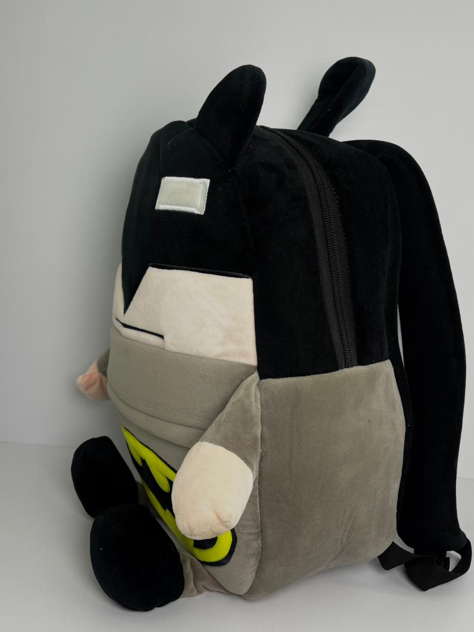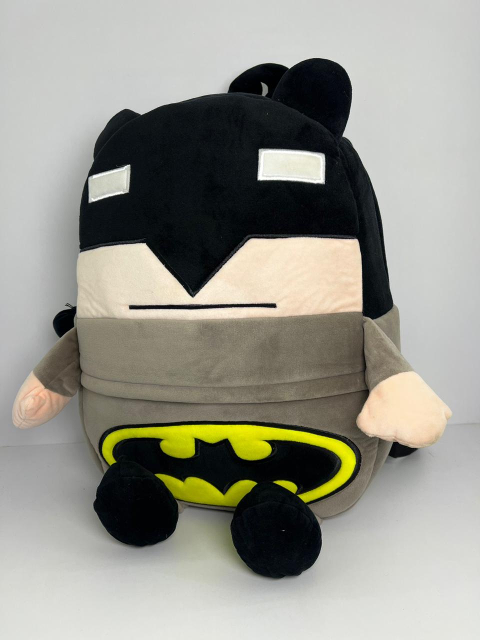 هذه حقيبة ظهر قطيفة (Plush Backpack) للأطفال بتصميم شخصية باتمان (Batman) الكرتونية.