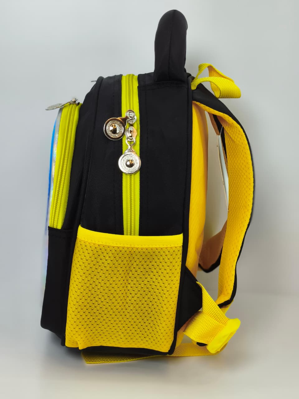 - توجد جيوب جانبية شبكية باللون الأصفر مخصصة لوضع زجاجة المياه (الزمزمية)