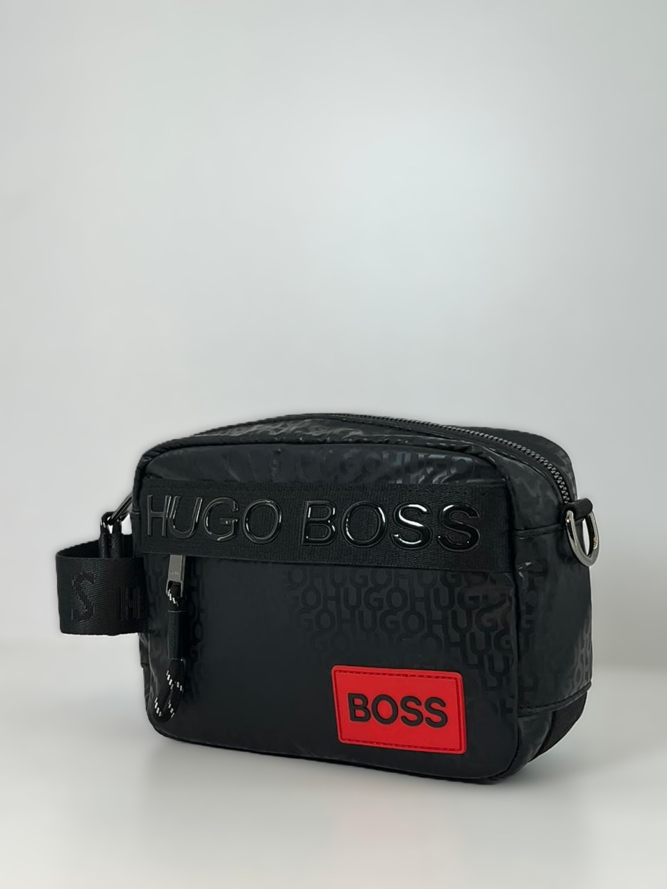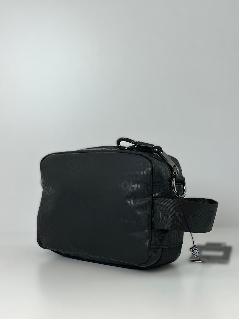 الحقيبة حقيبة كروس (Crossbody Bag) رجالية من ماركة HUGO BOSS (هوجو بوس)، وتحديداً من مجموعات “Reporter” أو “Messenger” التي تتميز بنقش شعار الماركة المتكرر