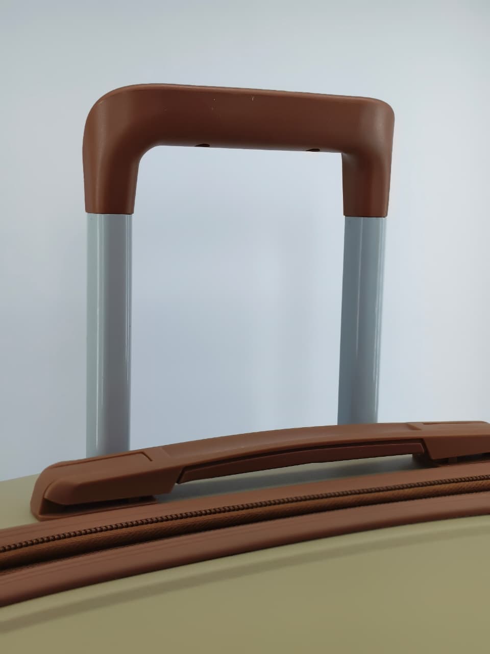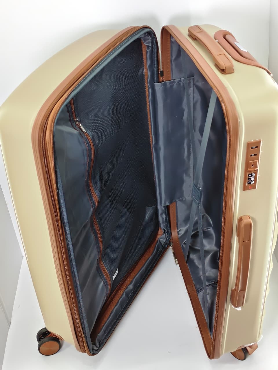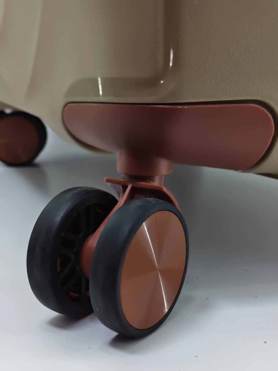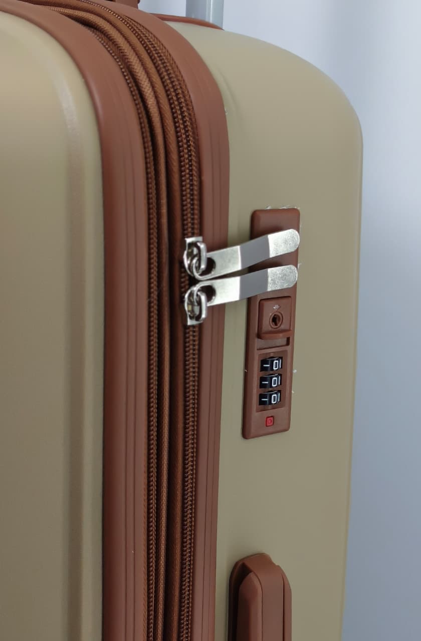 • اللون: اللون الظاهر هو البيج الذهبي (أو البيج اللامع)، مع مقابض وعجلات باللون البني المتناسق