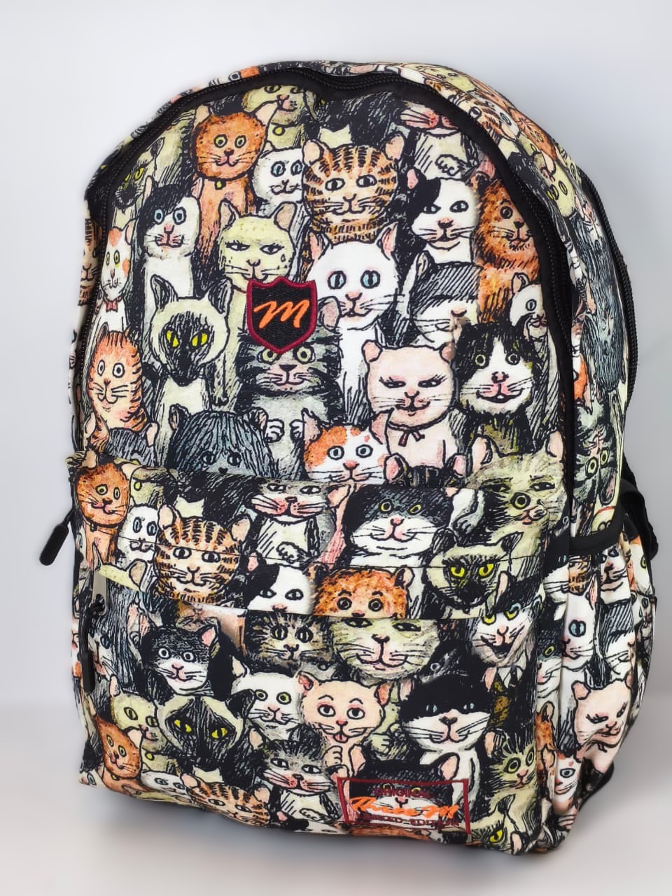 ثري إم (Three M)، وهي حقيبة مدرسية عملية تتميز بتصميم كرتوني جذاب يضم مجموعة متنوعة من القطط الملونة