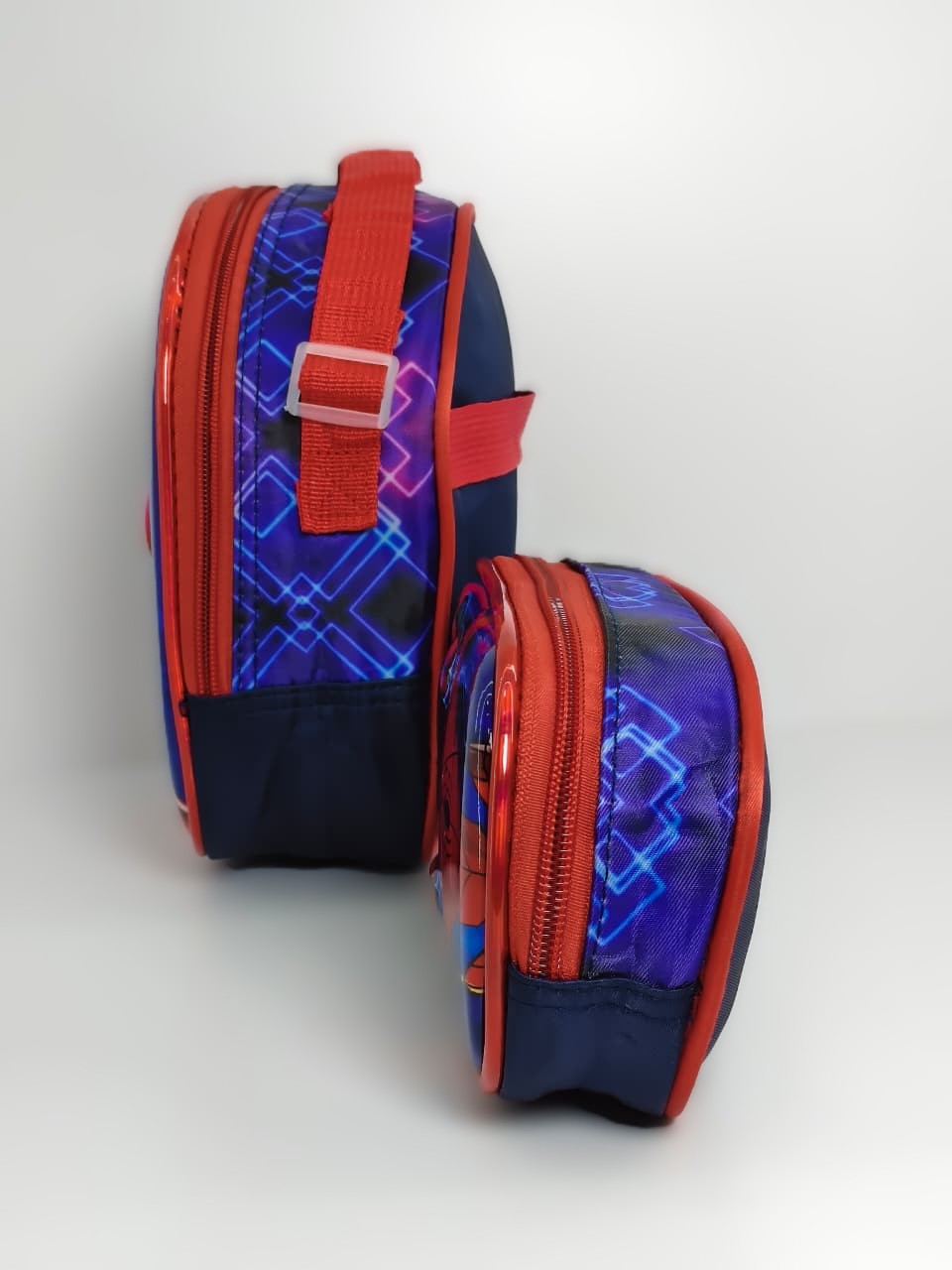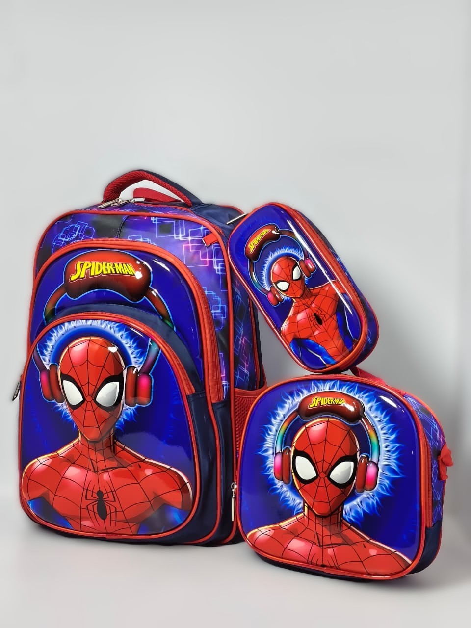 - التصميم: تأتي باللونين الأزرق والأحمر الكلاسيكيين لشخصية الرجل العنكبوت، مع طبقة خارجية غالباً ما تكون مقاومة للماء (Waterproof) وسهلة التنظيف.