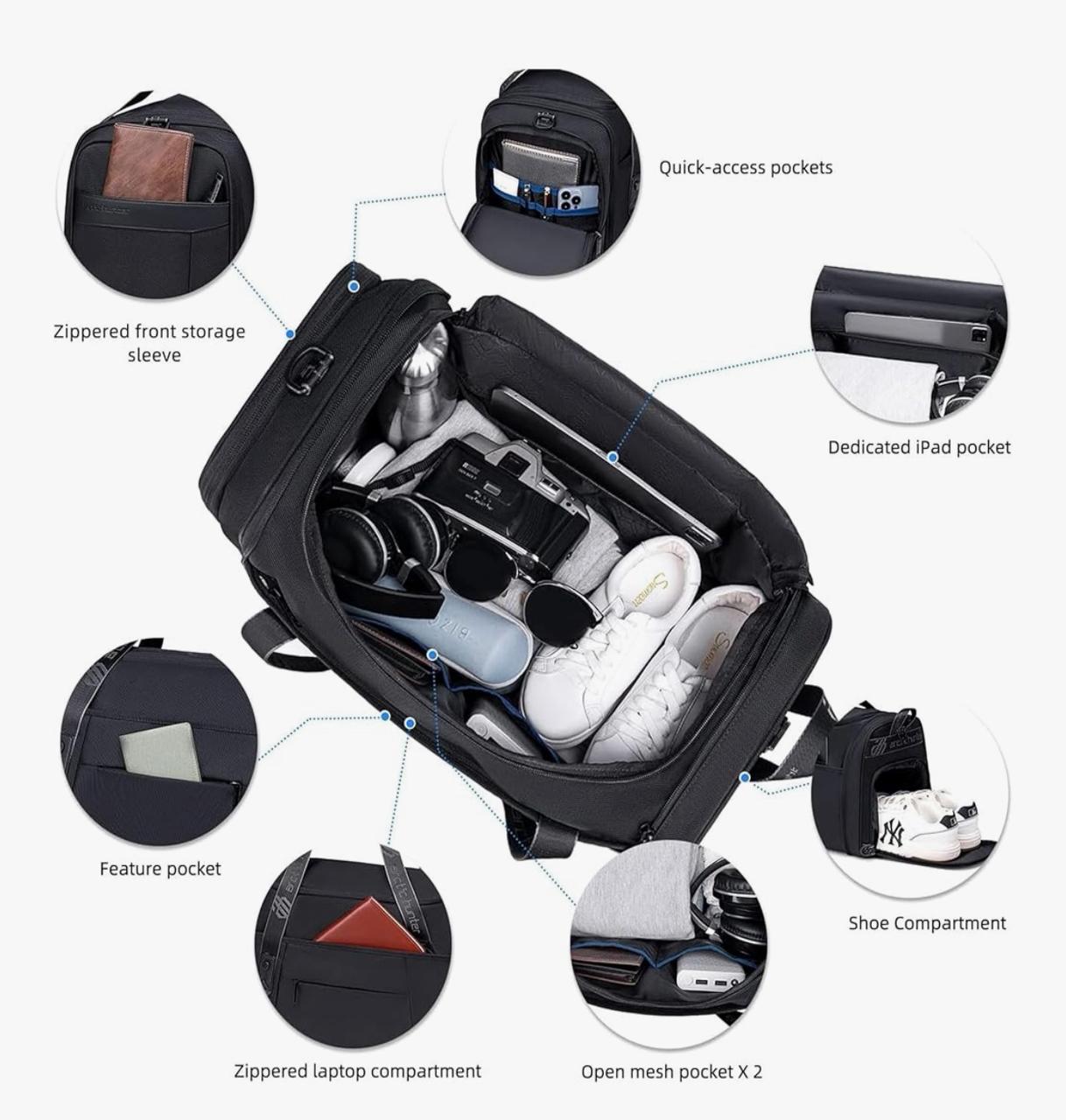 جيب منفصل للأحذية: تحتوي حقيبة السفر الخاصة بنا على جيب جانبي منفصل بسحاب للحفاظ على حذائك بشكل منفصل. سيحمي الهيكل المقاوم للماء أغراضك الثمينة من التلف.