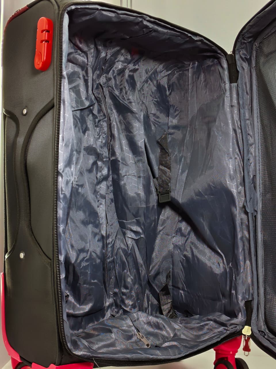 • الهيكل: شنطة قماشية ناعمة (Soft Luggage) تتميز بوزنها الخفيف ومرونتها، مع وجود شاسيه داخلي للحفاظ على شكلها تحت الضغط.