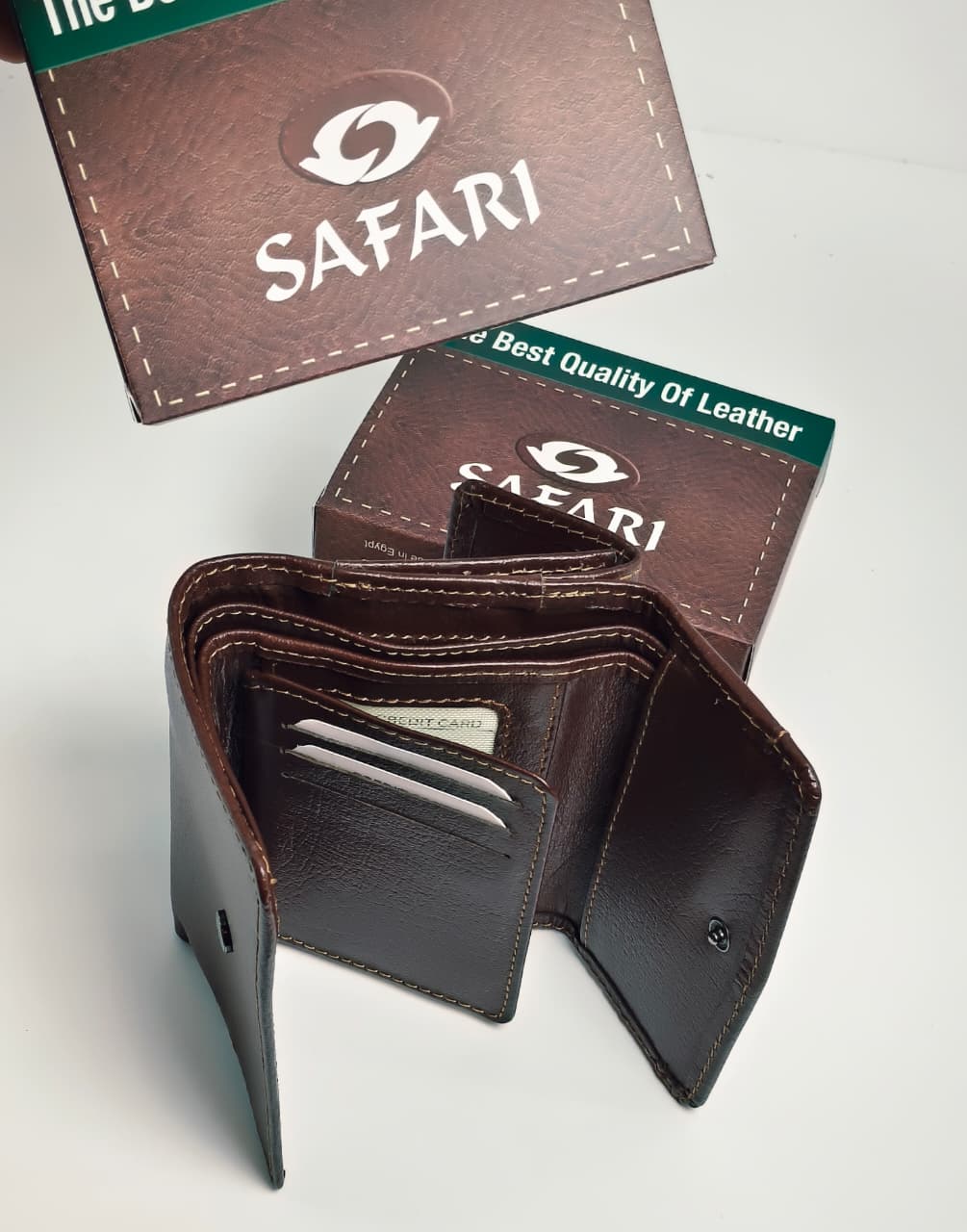 محفظة رجالي من ماركة سفاري (SAFARI)، وهي علامة تجارية مصرية معروفة في مجال المشغولات الجلدية الطبيعية.